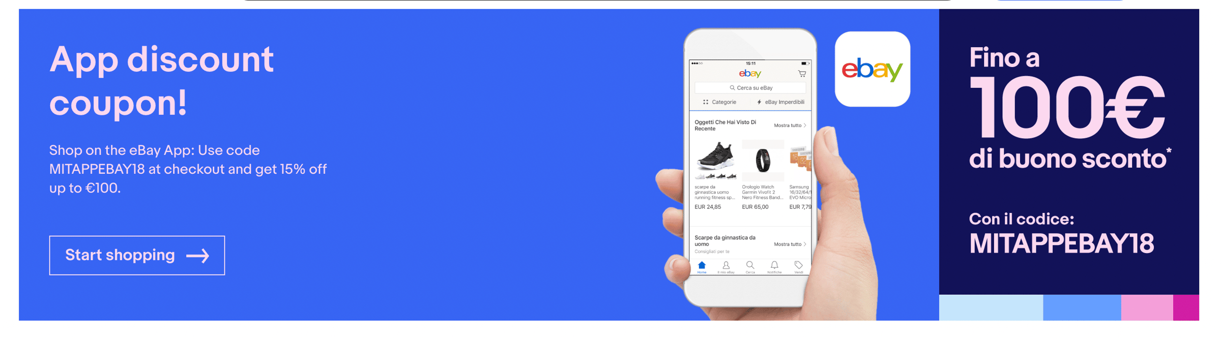 eBay demonstrates this strategy effectively with its dedicated app discount promotion page: